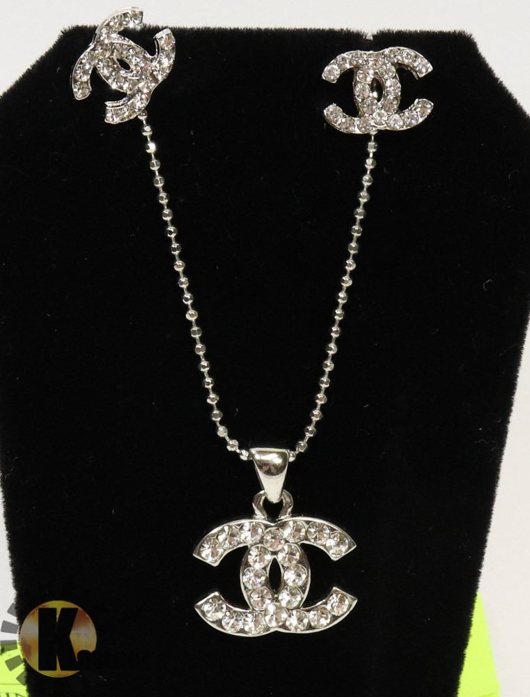 RHINESTONE CHANEL NECKLACE AND EARRING SET