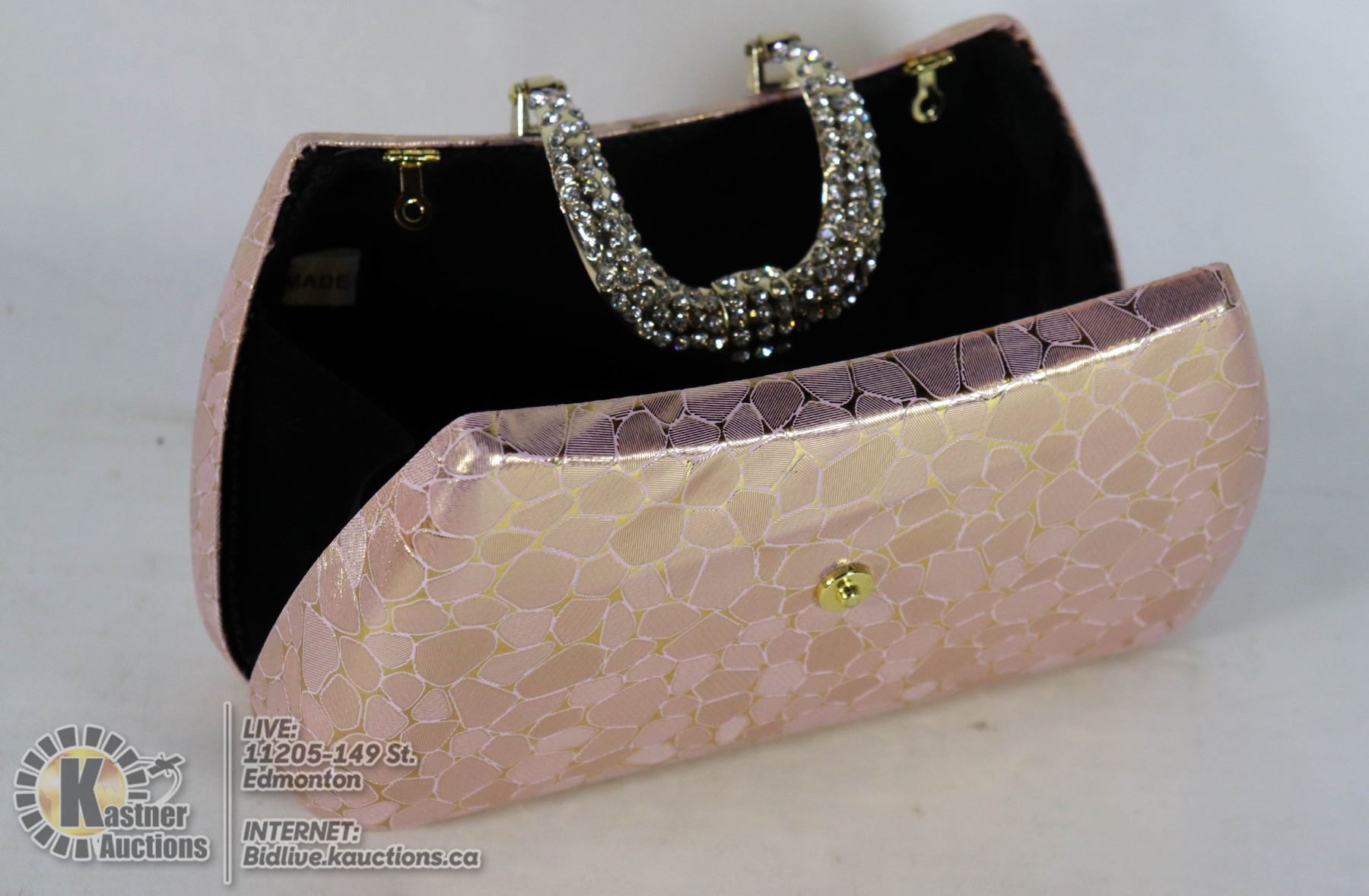 RHINESTONE HANDLED WOMANS CLUTCH PURSE
