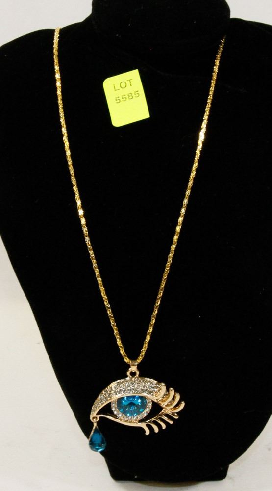 RHINESTONE WATER DROP EYE PENDANT WITH CHAIN