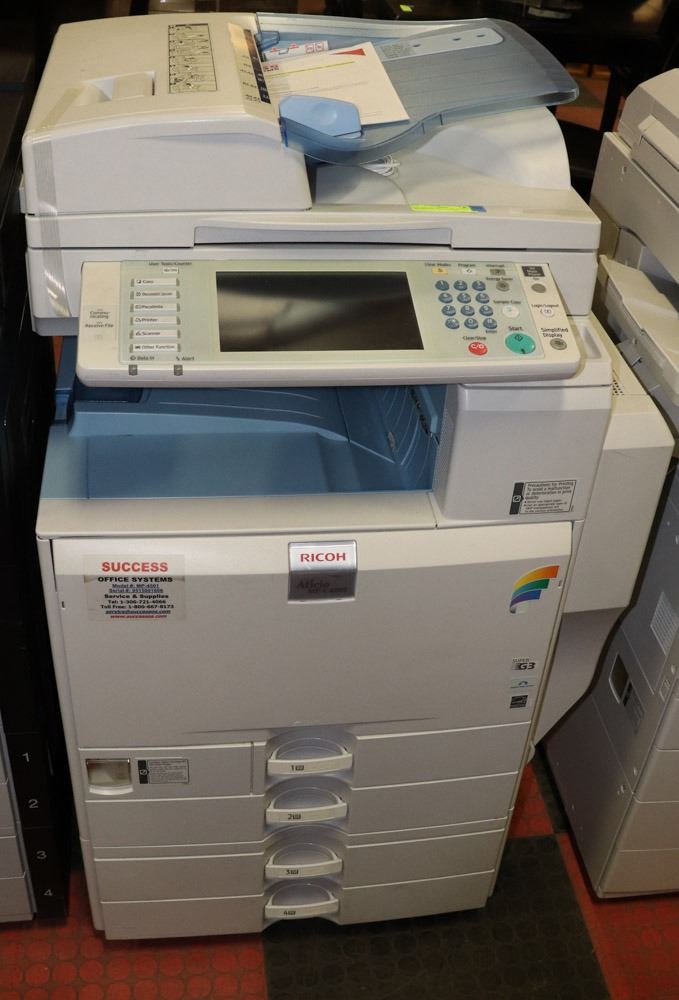 SERIAL #V951500166, VERIFIED BLACK @ 338,476; COLOR @114,033. 45 PAGE PER MINUTE COPY/PRINT/SCAN, OPTIONAL FAX MODULE INCLUDED, UP TO A3 (11"X17") PAPER, ONE 550 SHEET LETTER SIZE PAPER TRAYS, TWO 550 SHEET USER-ADJUSTABLE PAPERTRAY, 100 SHEET BYPASS, AUTOMATIC DUPLEX MODULE FOR 2 SIDED COPY/PRINT, 50 SHEET REVERSING AUTOMATIC DOCUMENT FEEDER, 1.5GB RAM; 250GB HDD. 100 DAY WARRANTY WITH ONGOING SERVICE AGREEMENT AVAILABLE, MSRP (NEW) $26,405.00. OFFICE