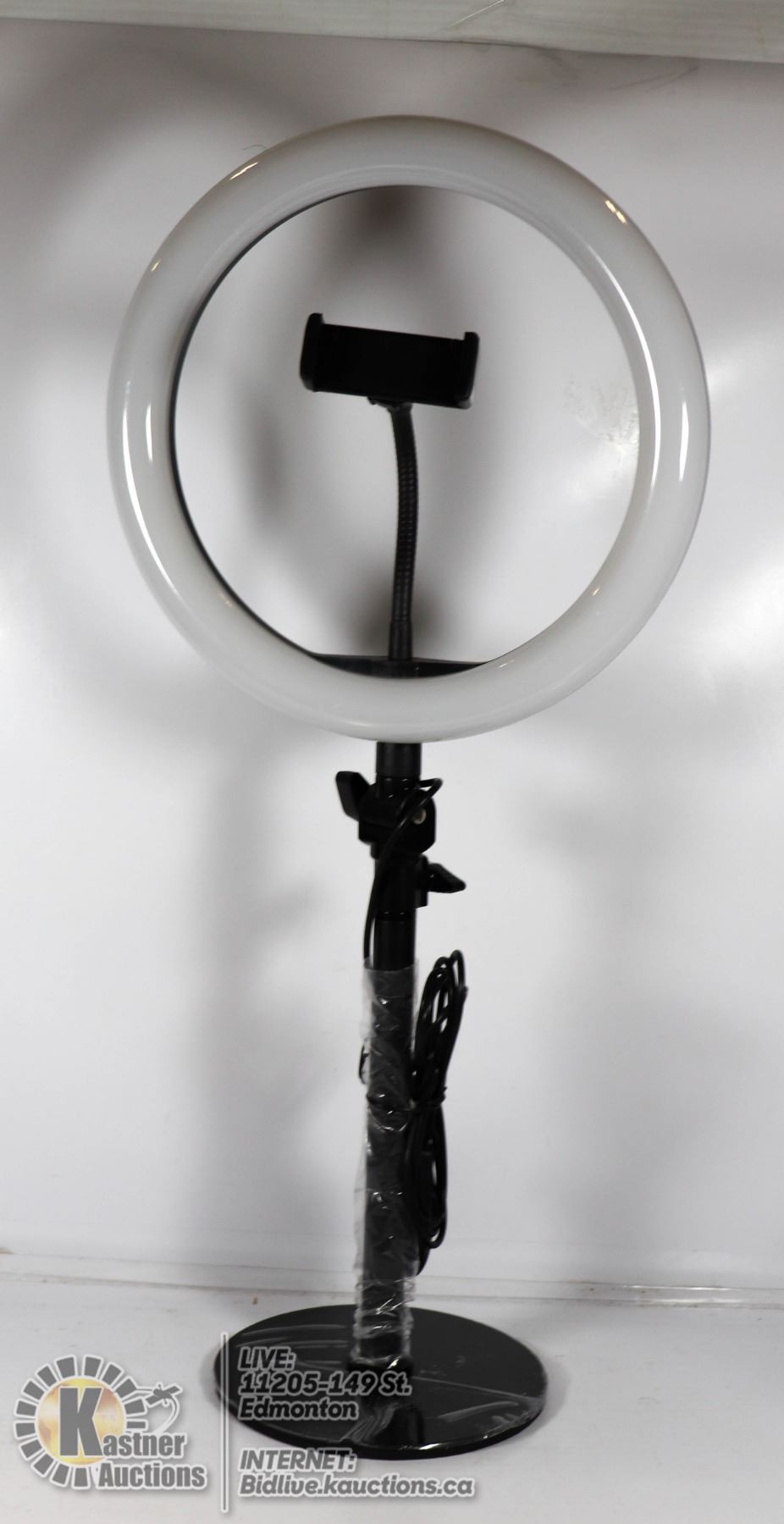 RING LIGHT ON STAND WITH PHONE HOLDER.