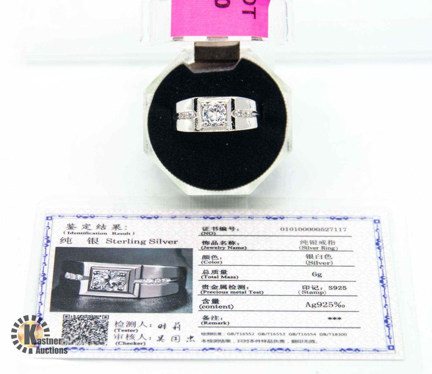 RING STAMPED 925, 0.75 CT CZ ROUND W CLEAR ACCENTS