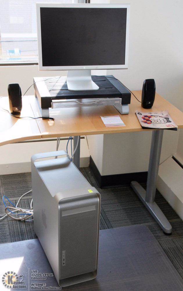 MONITOR AND SPEAKERS, MONITOR RISER. NO KEYBOARD OR MOUSE. ALL INFORMATION ON HARD DRIVE HAS BEEN REMOVED DUE TO SECURITY AND PRIVACY REASONS.