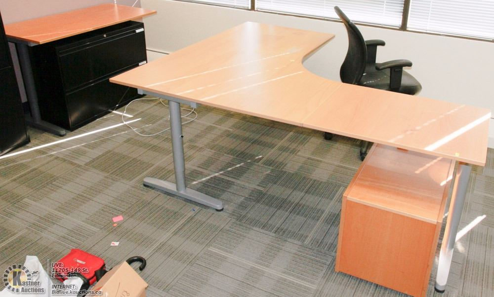 PROTECTOR, WORKING TABLE, 2 DOOR LATERAL FILING CABINET. DESK 29"H X 63"W X 31"D WORKING TABLE 30"H X 47"W X 23.5"D 2 DOOR LATERAL 27" X 33"W X 18"D