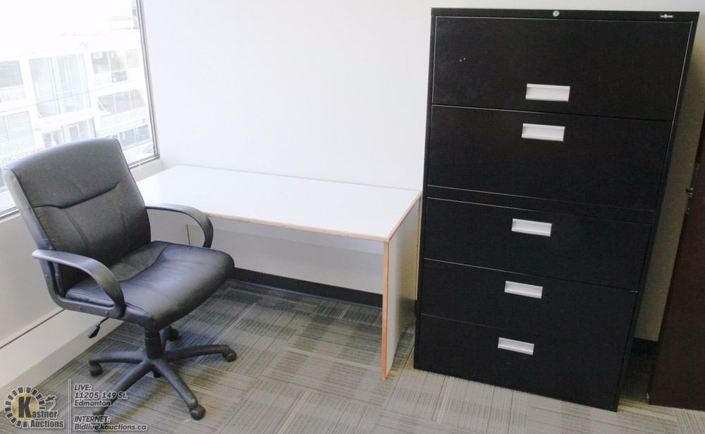 FILING CABINET. DESK 29.5"H X 60"W X 25"D. LATERAL 65"H X 36"W X 18"D.