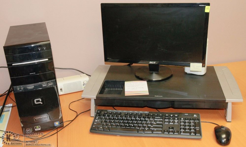 WITH 20" ACER MONITOR, RISER, KEYBOARD, MOUSE AND SPEAKERS. ALL INFORMATION ON HARD DRIVE HAS BEEN REMOVED DUE TO SECURITY AND PRIVACY REASONS.