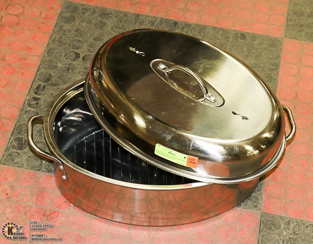ROASTING PAN- STAINLESS STEEL WITH RACK AND LID