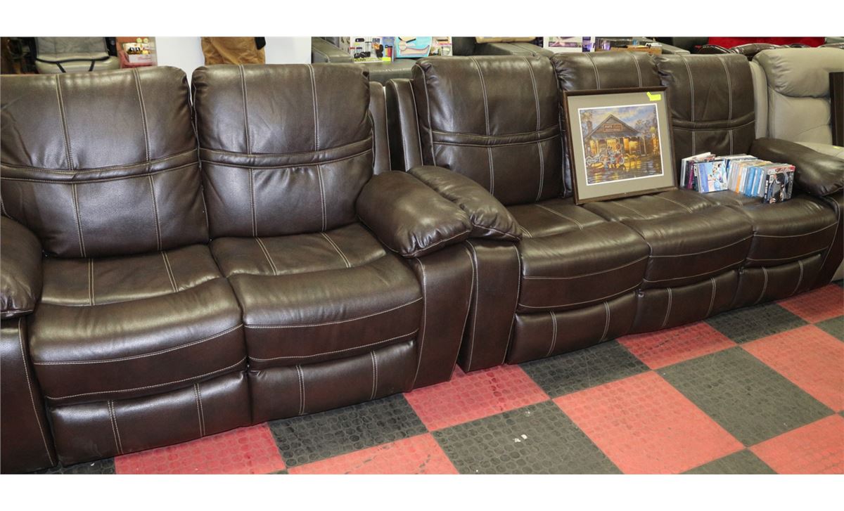 ROCKFORD BROWN LEATHETTE RECLINING SOFA & LOVESEAT