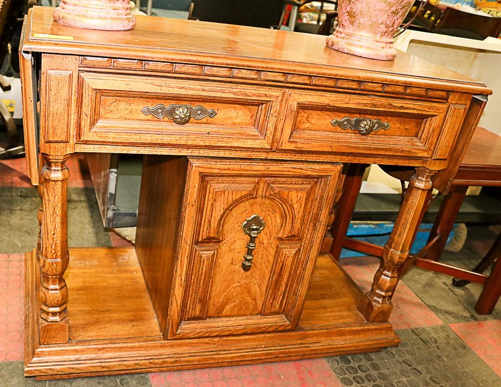 ROLLING SIDE TABLE WITH FOLD DOWN EXTENSIONS