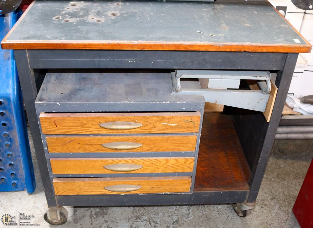 METAL-SLIDING SHELF, WOODEN DRAWERS, WOOD TABLETOP-CAN ATTATCH VICE