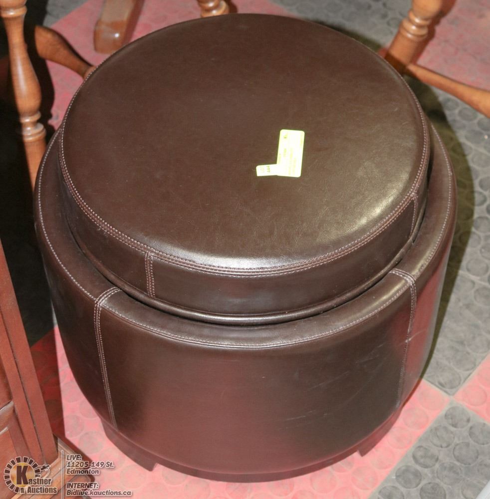 ROUND LEATHERETTE CONVERTIBLE STOOL/TRAY/OTTOMAN