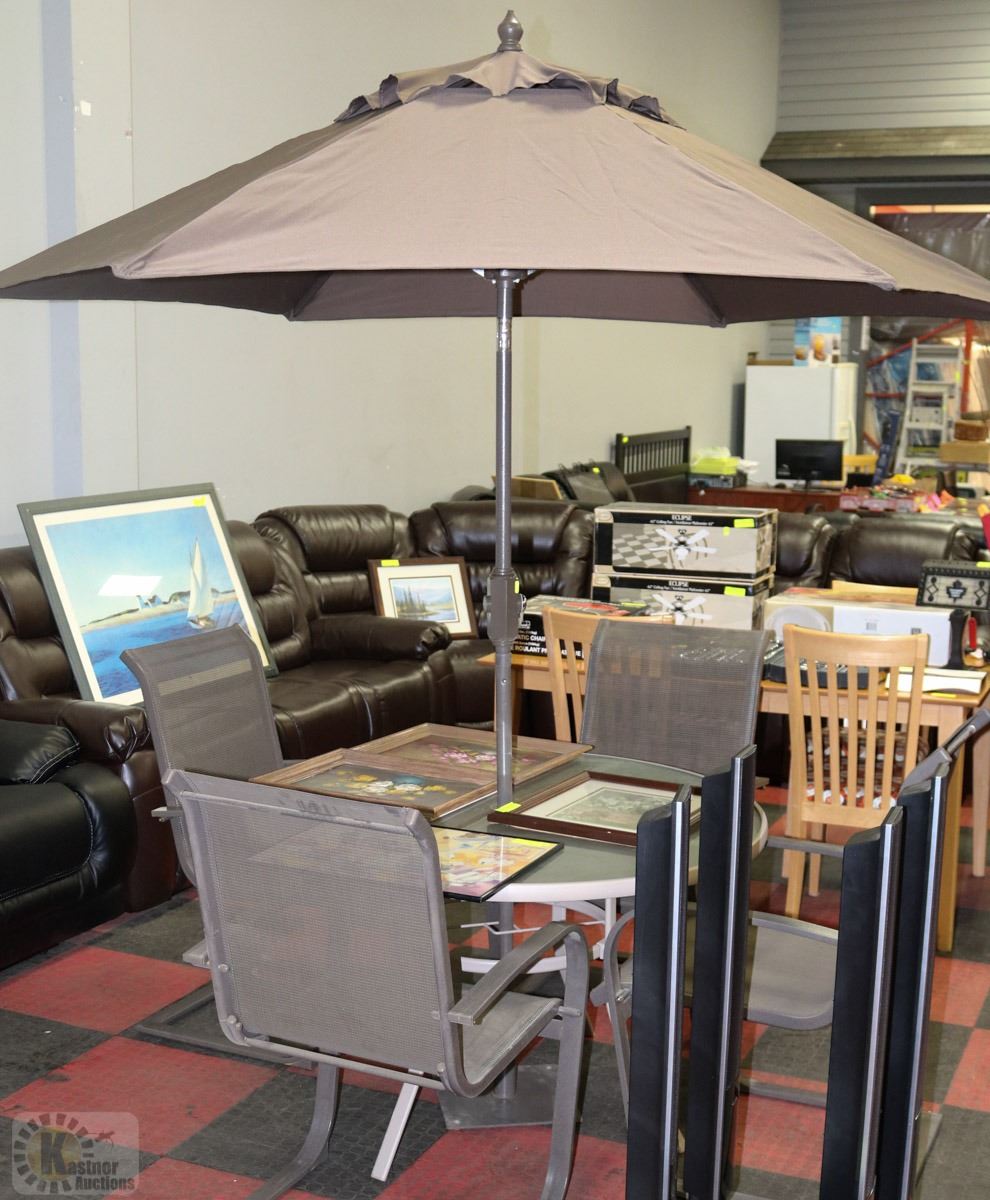 ROUND PATIO TABLE SET-TABLE 4 CHAIRS, UMBRELLA AND