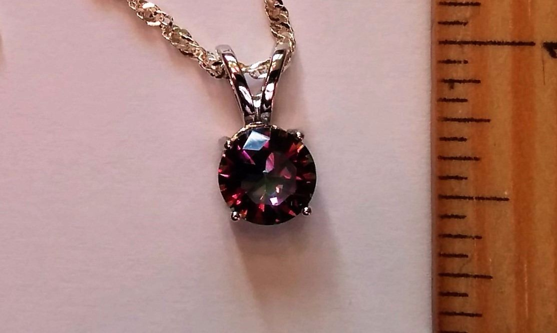 ROUND RAINBOW TOPAZ PENDANT & CHAIN
