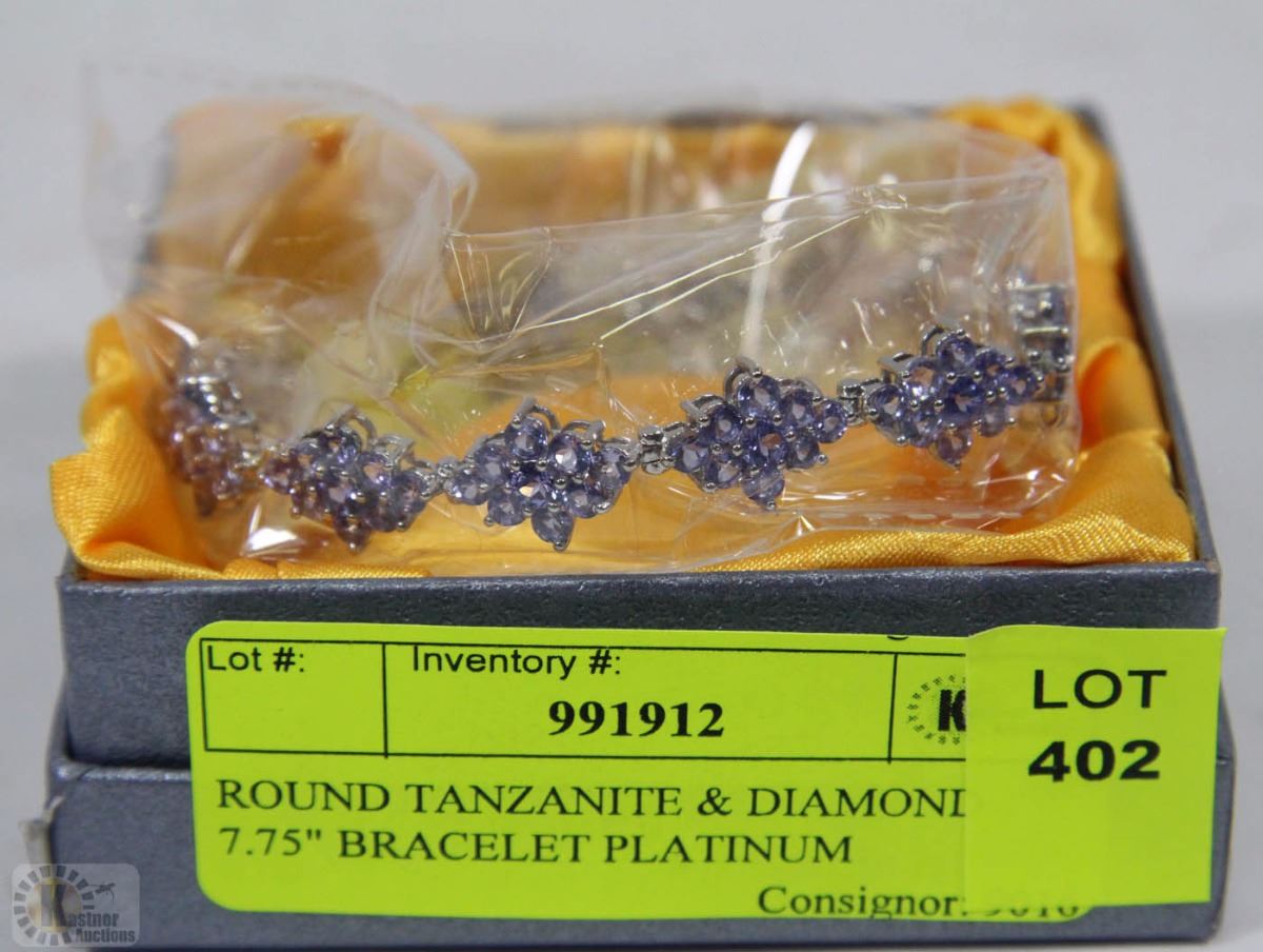 ROUND TANZANITE & DIAMOND 7.75  BRACELET PLATINUM