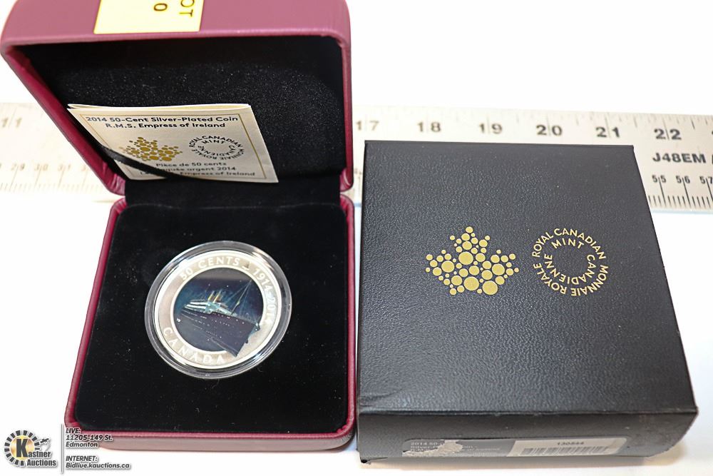 SILVER PLATED COLOURED COIN - "RMS EMPRESS OF IRELAND" W/COA CURRENCY. COLLECTIBLES
