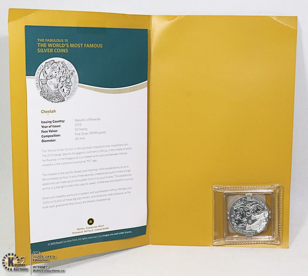 RWANDA 1 OZ FINE SILVER COIN (99.99%) - "CHEETAH" - W/COA - CURRENCY