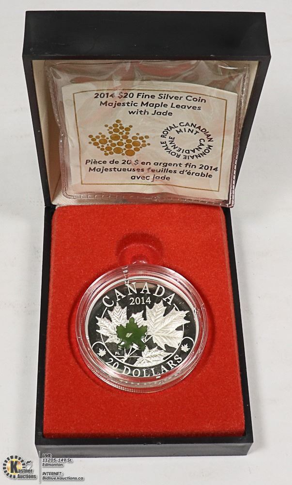 COIN - MAJESTIC MAPLE LEAVES WITH JADE (99.99% PURE SILVER) W/COA - CURRENCY