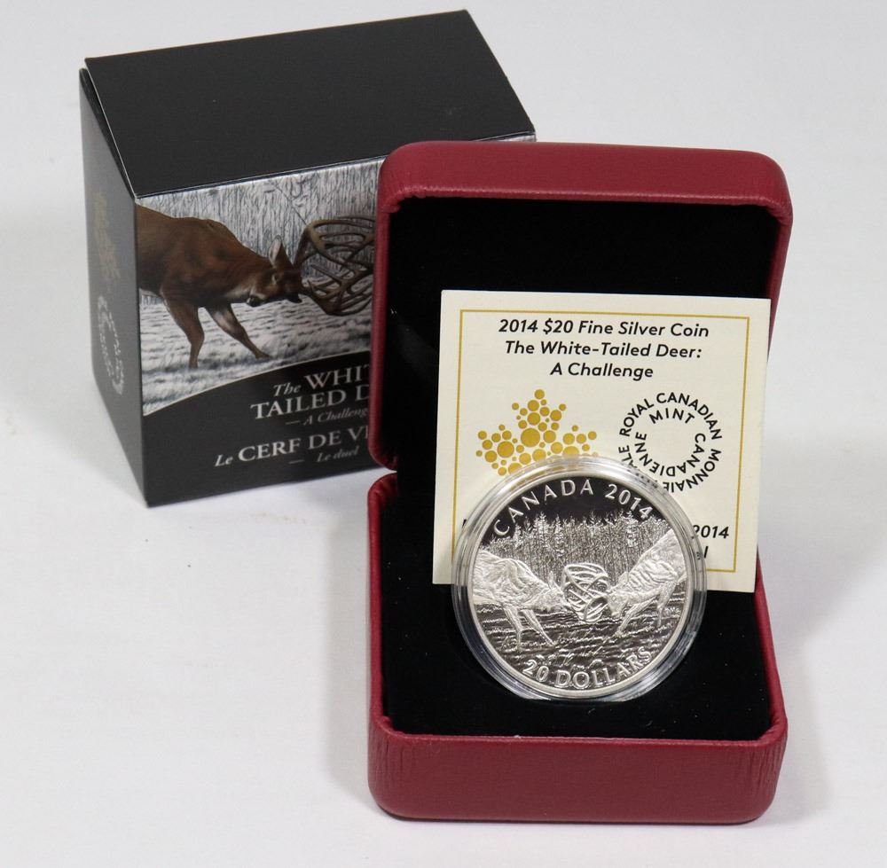 2014 $20 FINE SILVER COIN: THE WHITE TAILED DEER - A CHALLENGER (COLLECTABLES)
