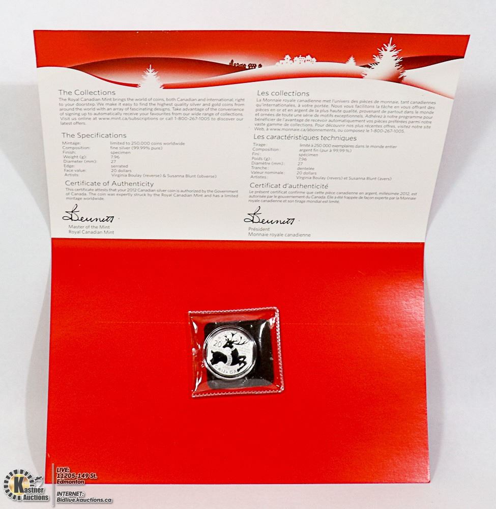 2012 - $20 FINE SILVER COIN (99.99%) - "REINDEER" COLLECTIBLE COIN - CURRENCY