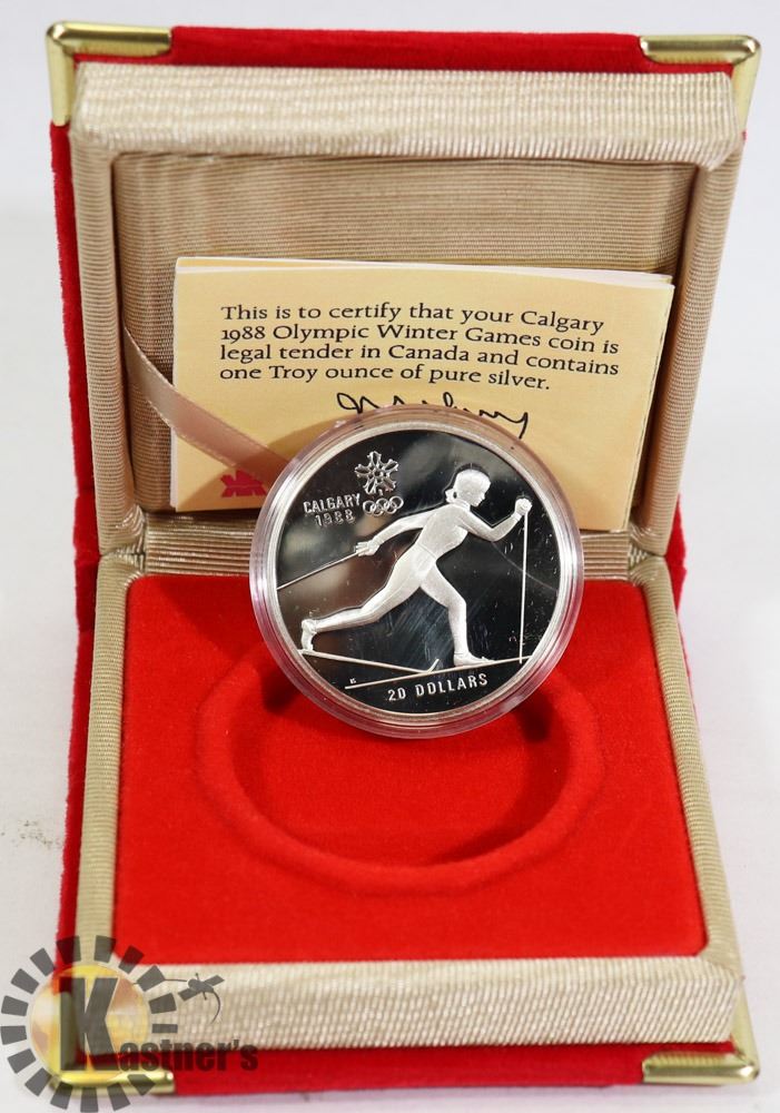 SILVER $20 CALGARY 1988 OLYMPIC WINTER GAMES COLLECTION - CROSS COUNTRY SKIING WITH COA - CURRENCY