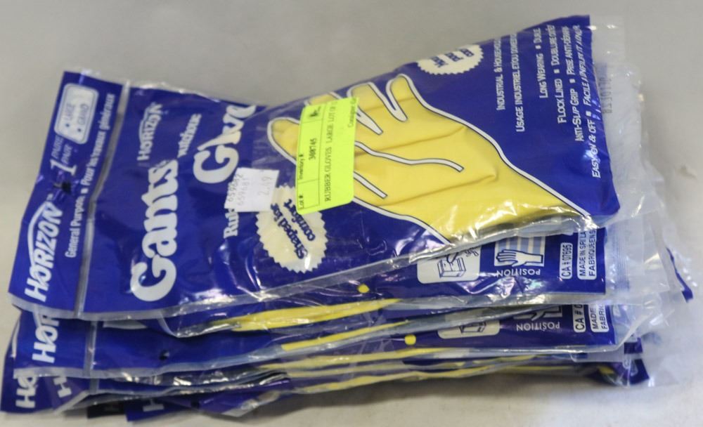 NEW, HORIZON BRAND RUBBER GLOVES, INDUSTRIAL, FLOCK LINED, ANTI-SLIP GRIP, EASY ON AND OFF, LOT OF 12