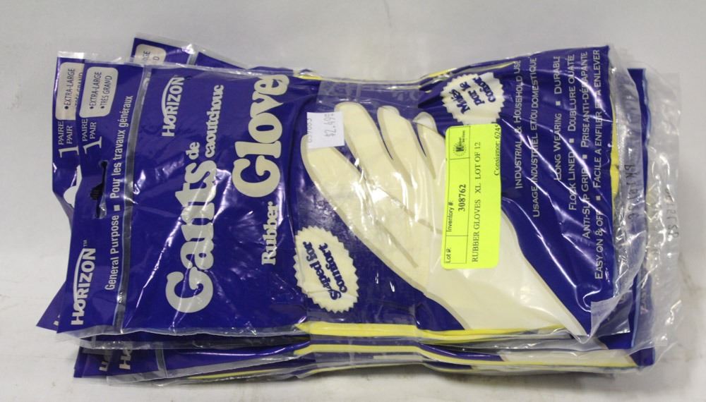 NEW, HORIZON BRAND RUBBER GLOVES, INDUSTRIAL, FLOCK LINED, ANTI-SLIP GRIP, EASY ON AND OFF, LOT OF 12 - AS THEY COME IN CATALOGUE ORDER