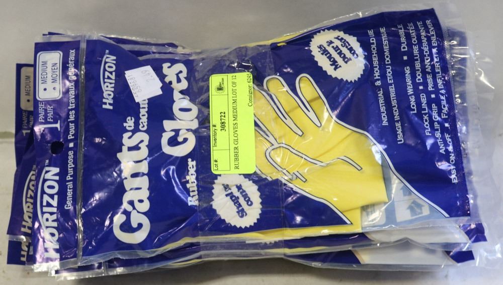 NEW, HORIZON BRAND RUBBER GLOVES, INDUSTRIAL, FLOCK LINED, ANTI-SLIP GRIP, EASY ON AND OFF, LOT OF 12