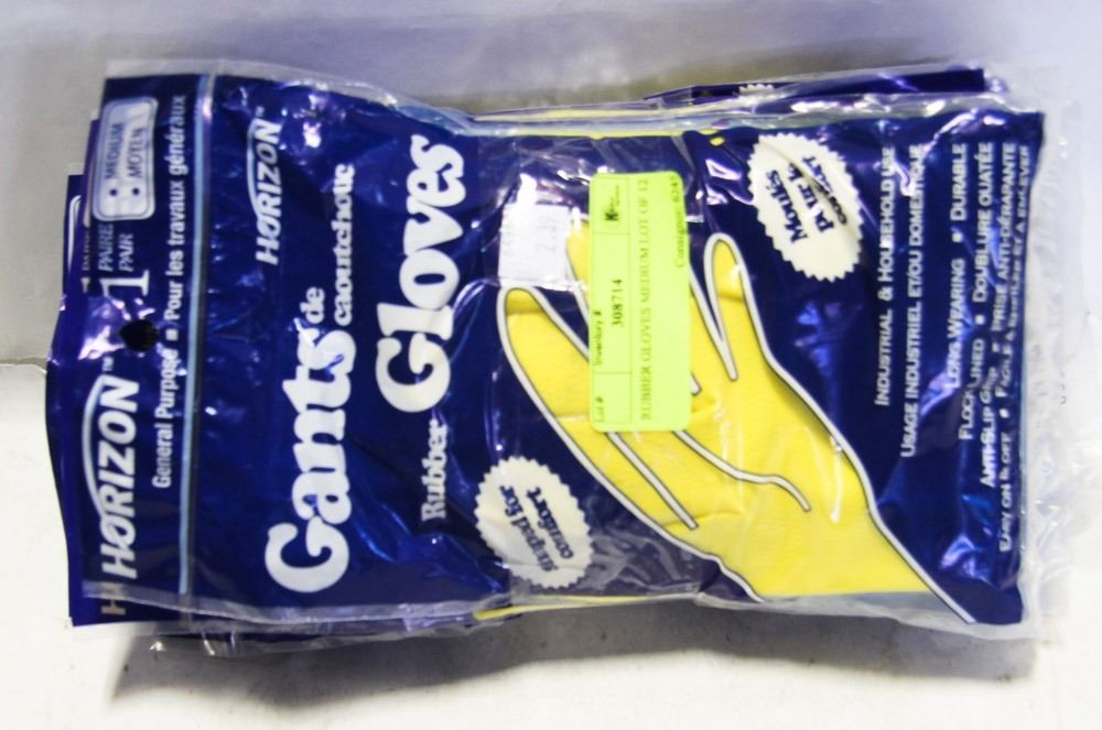 NEW, HORIZON BRAND RUBBER GLOVES, INDUSTRIAL, FLOCK LINED, ANTI-SLIP GRIP, EASY ON AND OFF, LOT OF 12