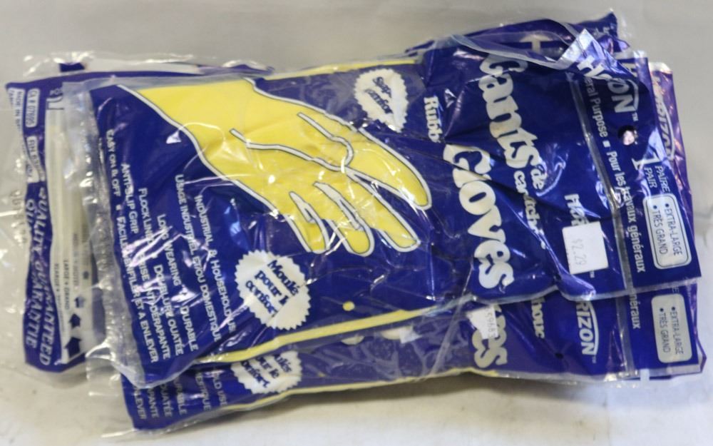 NEW, HORIZON BRAND RUBBER GLOVES, INDUSTRIAL, FLOCK LINED, ANTI-SLIP GRIP, EASY ON AND OFF, LOT OF 12