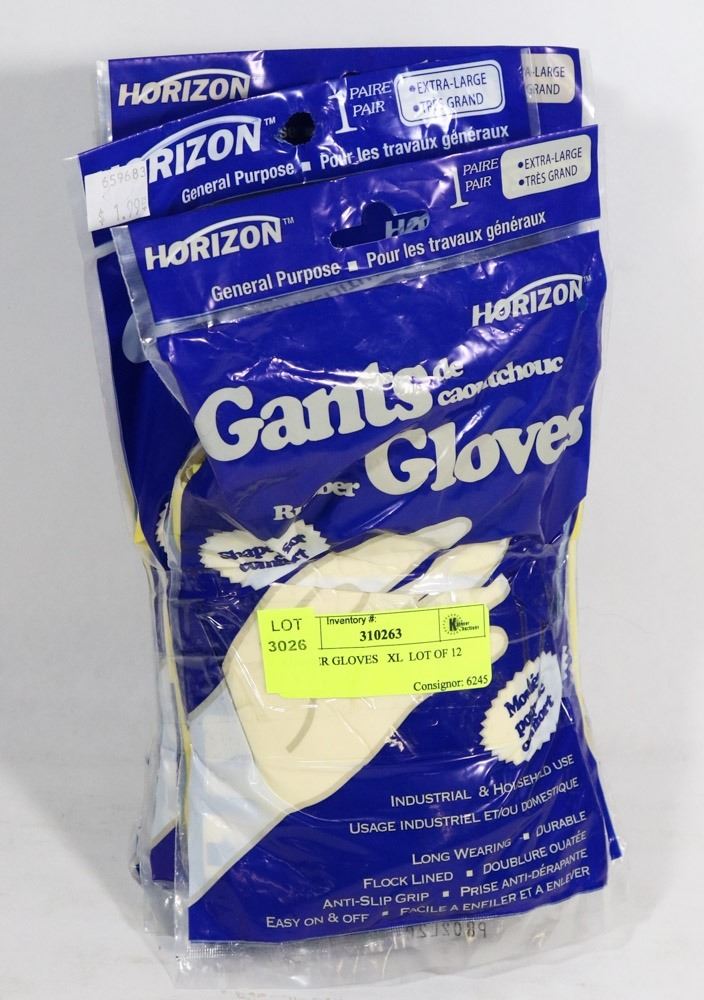 NEW, HORIZON BRAND RUBBER GLOVES, INDUSTRIAL, FLOCK LINED, ANTI-SLIP GRIP, EASY ON AND OFF, LOT OF 12