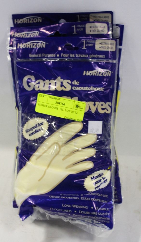 NEW, HORIZON BRAND RUBBER GLOVES, INDUSTRIAL, FLOCK LINED, ANTI-SLIP GRIP, EASY ON AND OFF, LOT OF 12