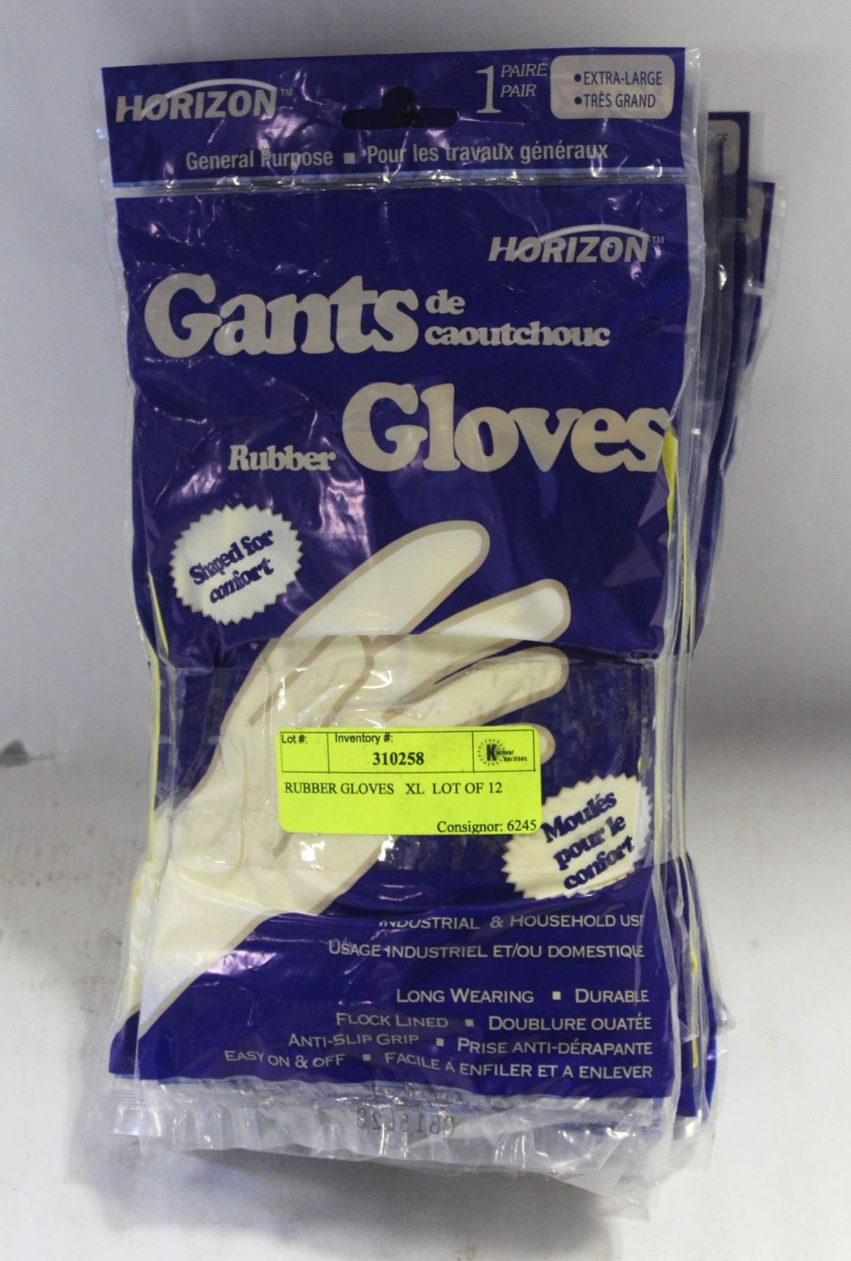 NEW, HORIZON BRAND RUBBER GLOVES, INDUSTRIAL, FLOCK LINED, ANTI-SLIP GRIP, EASY ON AND OFF, LOT OF 12