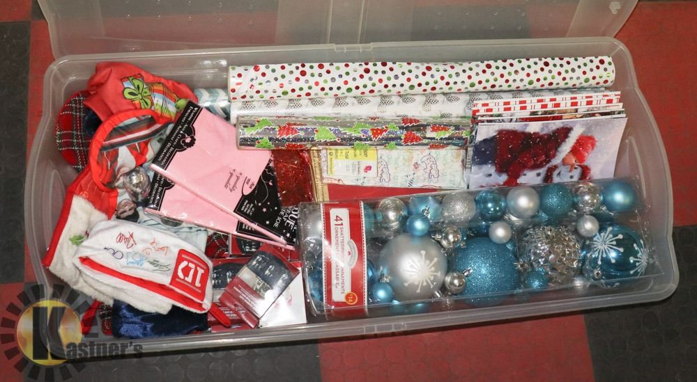FULL OF CHRISTMAS WRAP, BOXES, TISSUE, TREE DECORATIONS, STOCKINGS, ETC. - GENERAL, SEASONAL