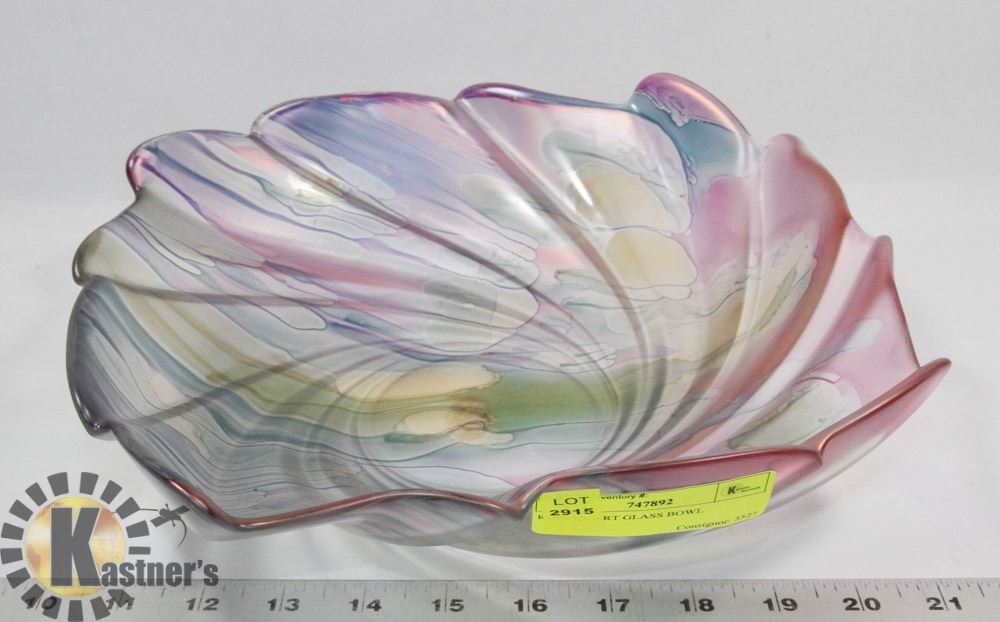 EACH PIECE IS ORIGINAL, 11 INCHES WIDE, SWIRL RIDGES, EACH PIECE IS HAND PAINTED AND THEN FIRED SO IT MELTS INTO THE GLASS, HAS RUEVEN LABEL STILL ON THE BOTTOM