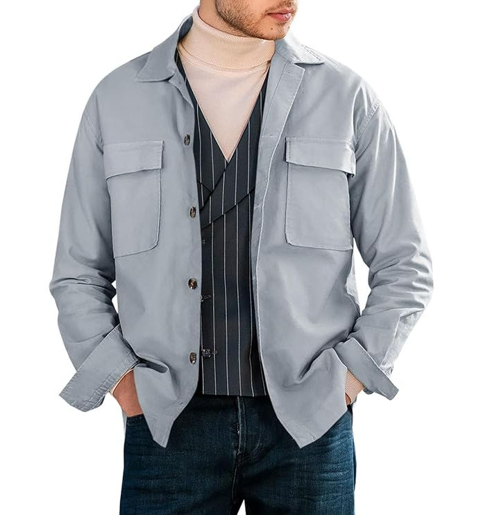 RUNCATI MENS BUTTON DOWN SHIRT JACKET CASUAL COTTON MILITARY SHACKET LIGHTWEIGHT OUTDOOR CARGO JACKET COAT