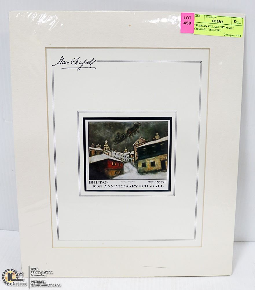 MARC CHAGALL, KNOWN ARTIST, STAMP-INSPIRED PAINTING TO CELEBRATE 100TH ANNIVERSARY, MATTED 12 X 14 INCHES
