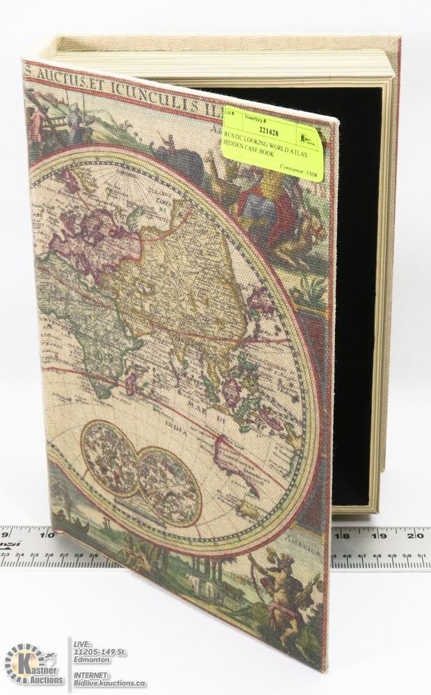 RUSTIC LOOKING WORLD ATLAS HIDDEN CASE BOOK