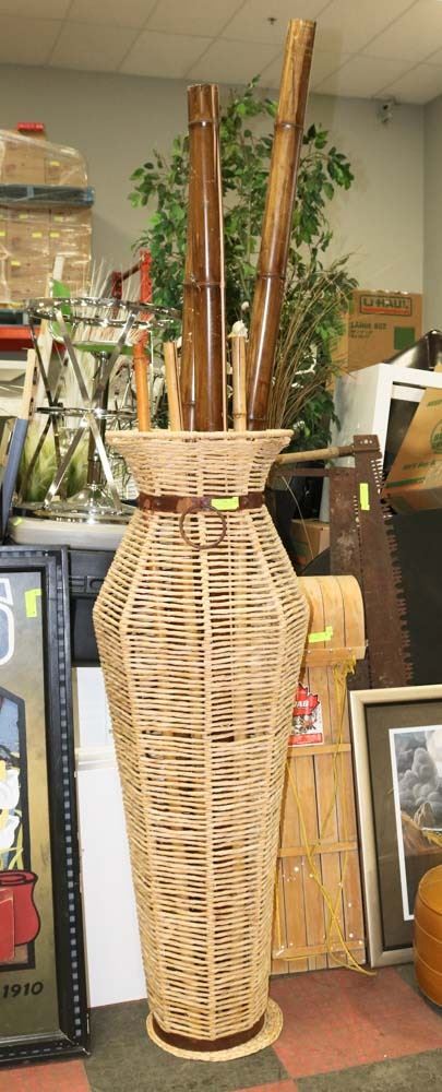 RUSTIC WICKER FLOOR VASE 63  TALL.