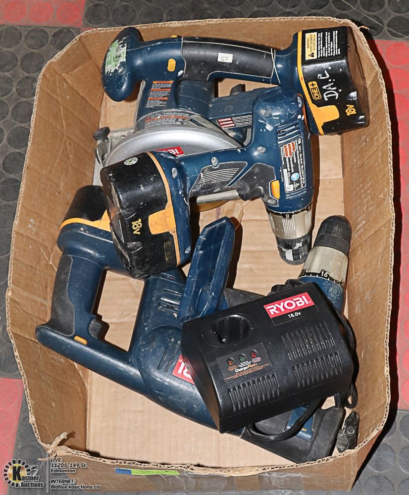 RYOBI 18VOLT POWER TOOLS INCLUDES 2 DRILLS,