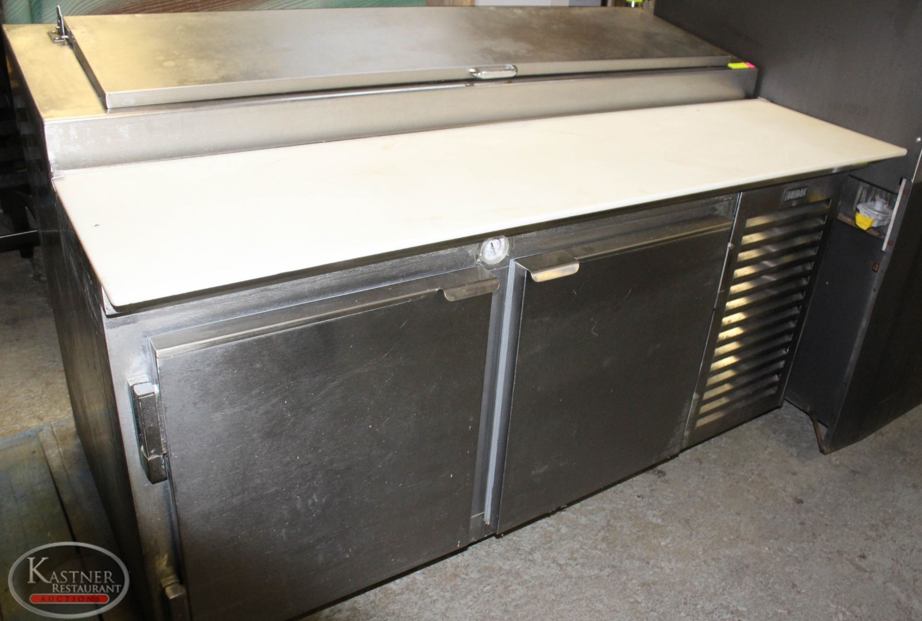 2-DOOR CABINET STORAGE, 57" X 12" TOP ACCESS TO COLD INSERTS(TWO 1/2-SIZE, FOUR 1/3-SIZE), 65" X 32"(+2" FOR POLYBOARD) X 42"
