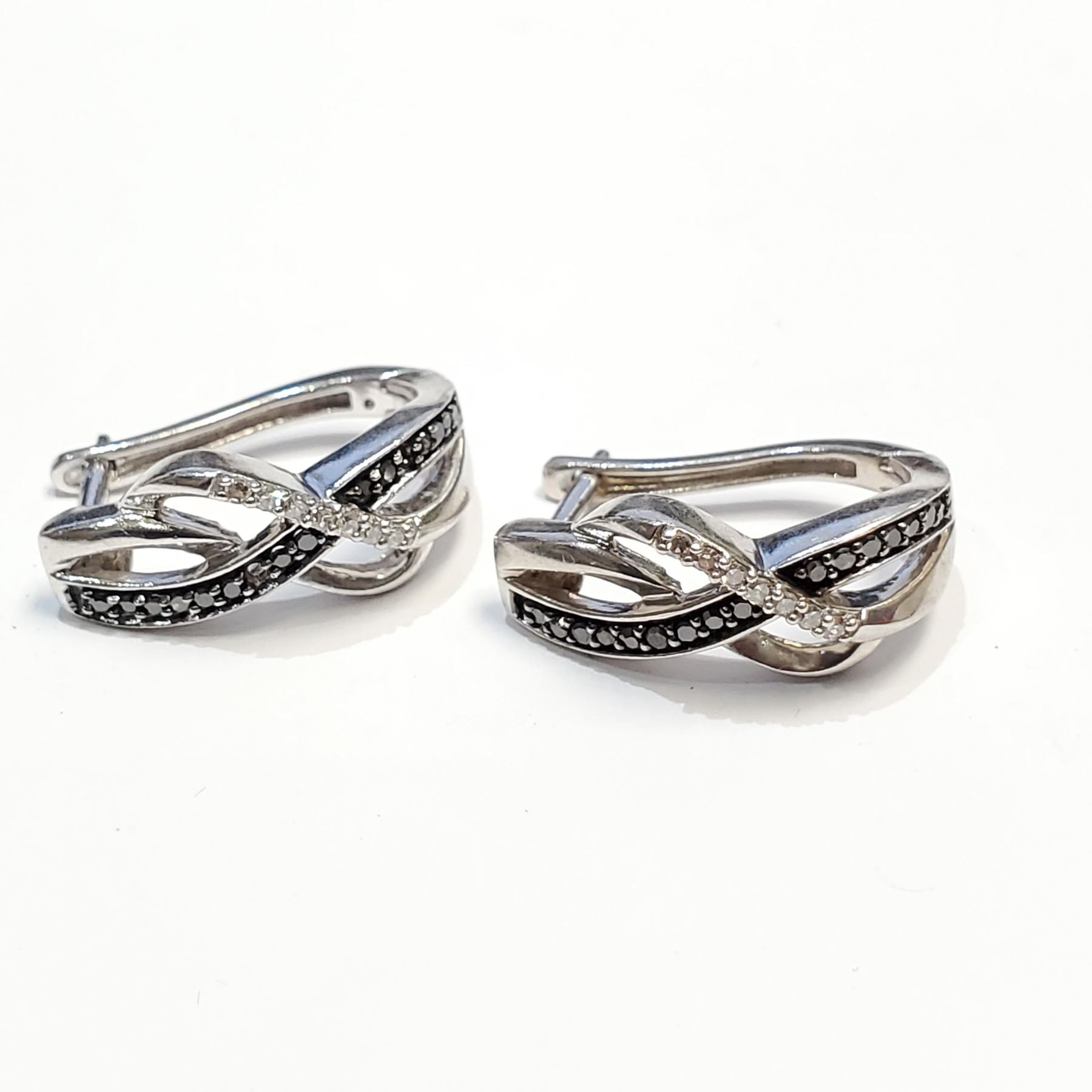 BLACK DIAMOND(0.2CT) DIAMONDS(0.1CT) **ONE EARRING IS MISSING 2 DIAMONDS** SETTING AND STONES APPEAR TO BE COLOR TREATED **ALL ITEMS MUST BE REMOVED BY 5PM SATURDAY, FEBRUARY 25TH 2023. ALL REMAINING ITEMS WILL BE SUBJECT TO A $6.00 PER DAY STORAGE CHARGE. ANY ITEMS REMAINING AFTER MONDAY, MARCH 13TH, 2023 WILL BE CONSIDERED FORFEITED. NO REFUNDS WILL BE ISSUED FOR FORFEITED ITEMS. TO SCHEDULE A PICK UP APPOINTMENT CLICK HERE