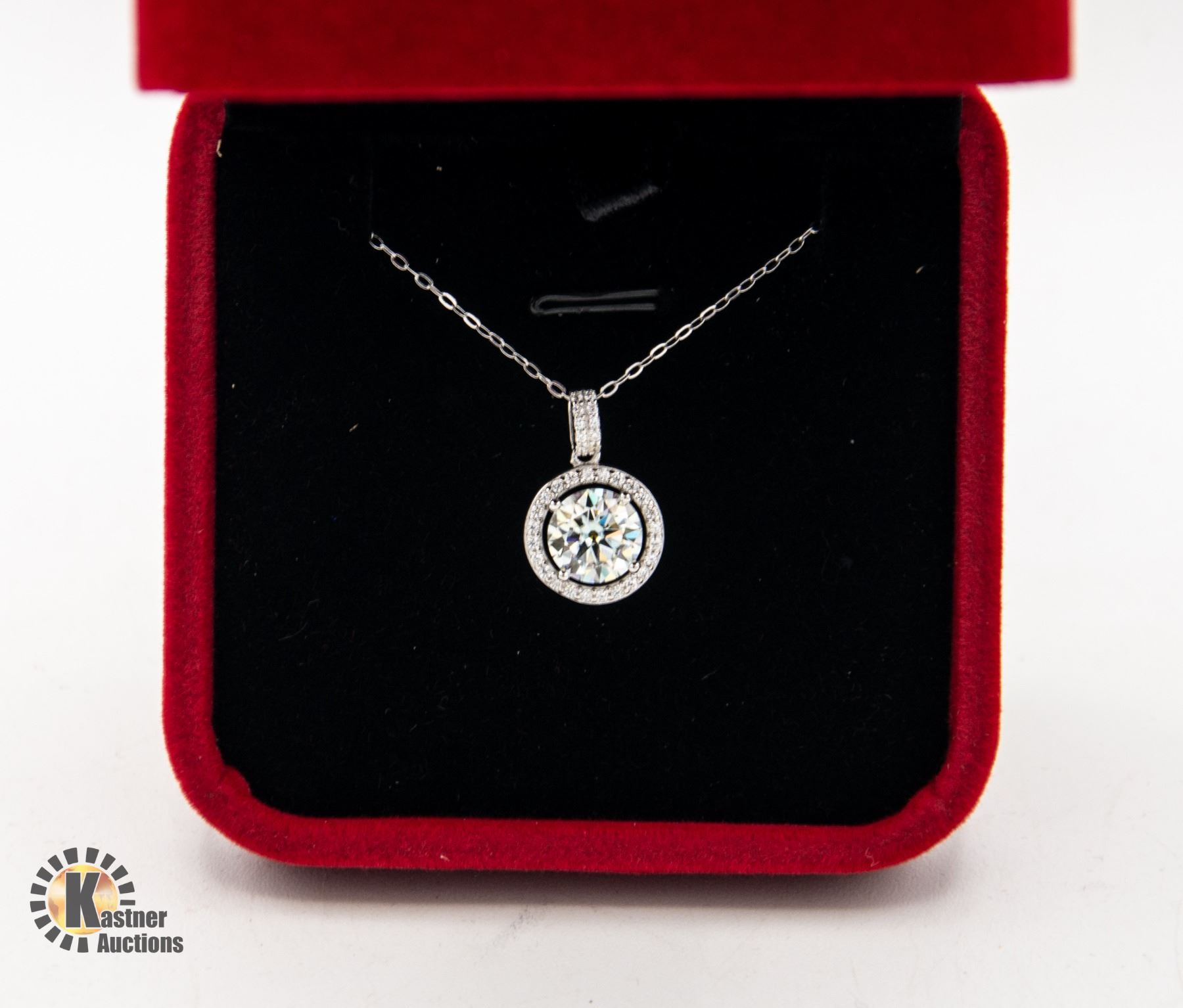 SURROUNDED BY HALO OF 34 MOISSANITE WEIGHING AN APPROXIMATE TOTAL WEIGHT OF 0.34 CARAT INCLUDING SOME SET IN BAIL SET IN S925 PENDANT AND NECKLACE **ALL ITEMS MUST BE REMOVED BY 5PM SATURDAY, JANUARY 20TH 2024. ALL REMAINING ITEMS WILL BE SUBJECT TO A $6.00 PER DAY STORAGE CHARGE. ANY ITEMS REMAINING AFTER MONDAY, FEBRUARY 5TH, 2024 WILL BE CONSIDERED FORFEITED. NO REFUNDS WILL BE ISSUED FOR FORFEITED ITEMS. TO SCHEDULE A PICK UP APPOINTMENT CLICK HERE
