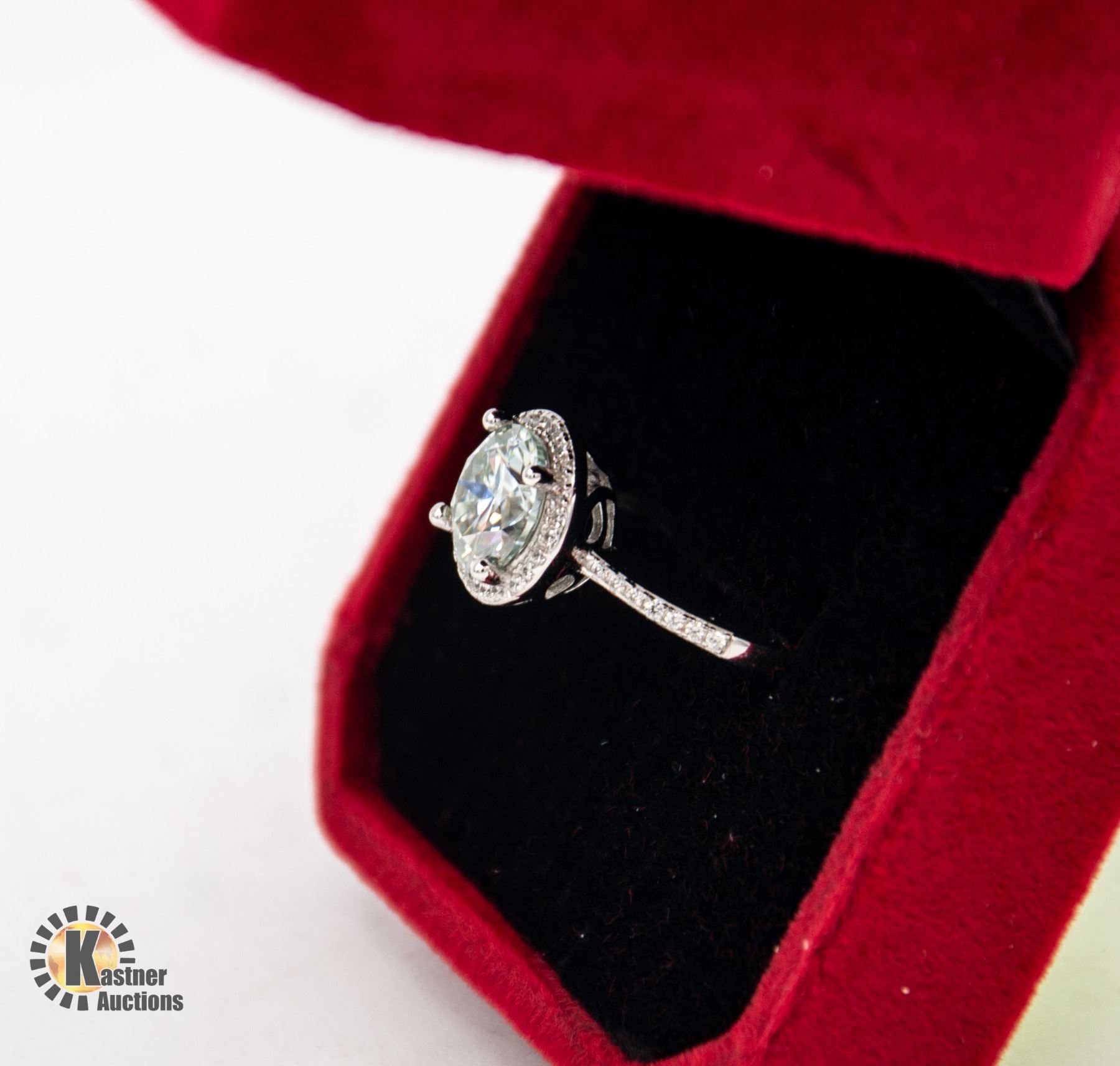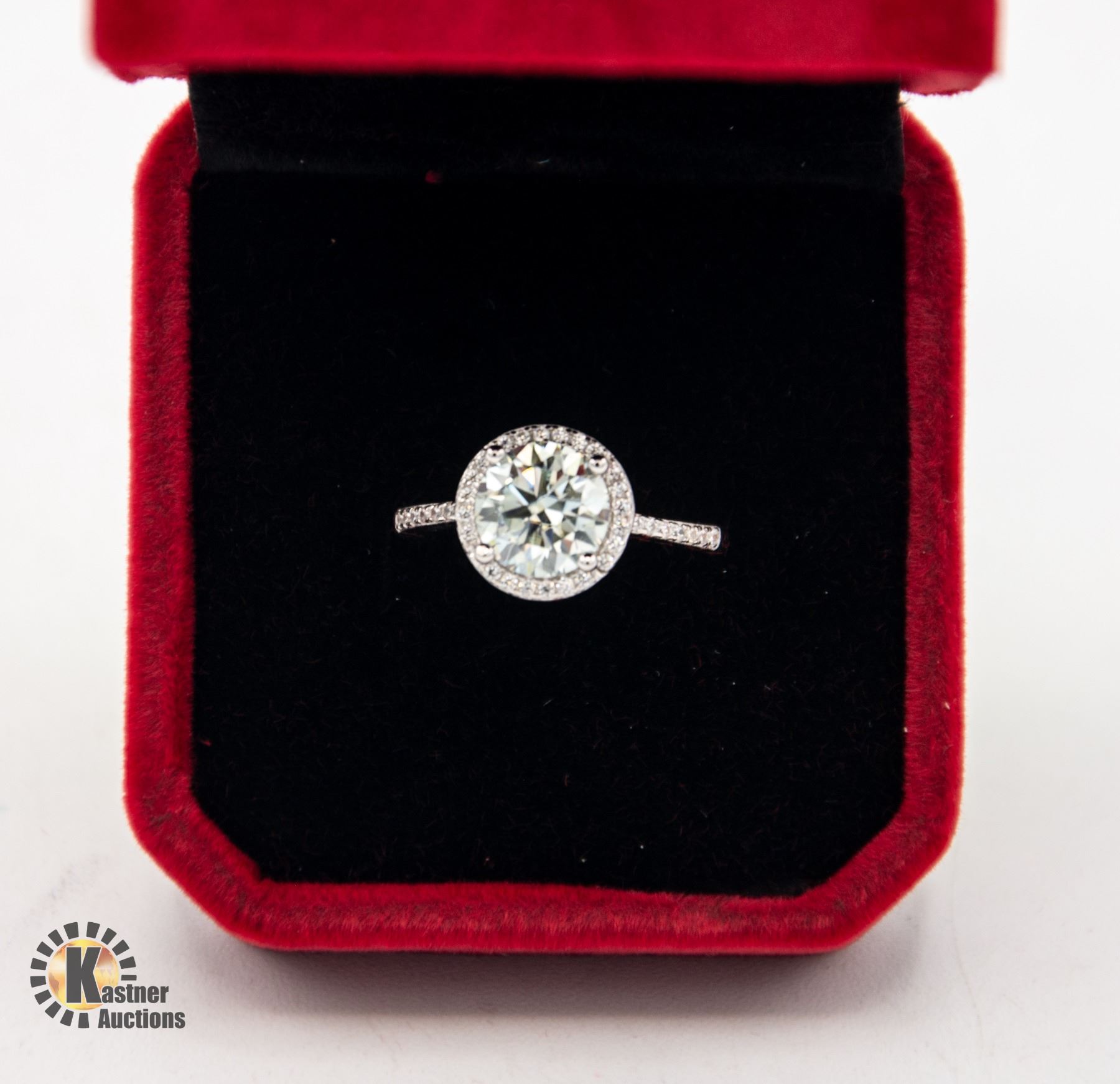 1.00 CARAT WITH 35 CUBIC ZIRCONIUM SET IN HALO AND SHANK S925 WEIGHING A TOTAL 0.35 CARAT RING SIZE ADJUSTABLE **ALL ITEMS MUST BE REMOVED BY 5PM SATURDAY, JANUARY 20TH 2024. ALL REMAINING ITEMS WILL BE SUBJECT TO A $6.00 PER DAY STORAGE CHARGE. ANY ITEMS REMAINING AFTER MONDAY, FEBRUARY 5TH, 2024 WILL BE CONSIDERED FORFEITED. NO REFUNDS WILL BE ISSUED FOR FORFEITED ITEMS. TO SCHEDULE A PICK UP APPOINTMENT CLICK HERE