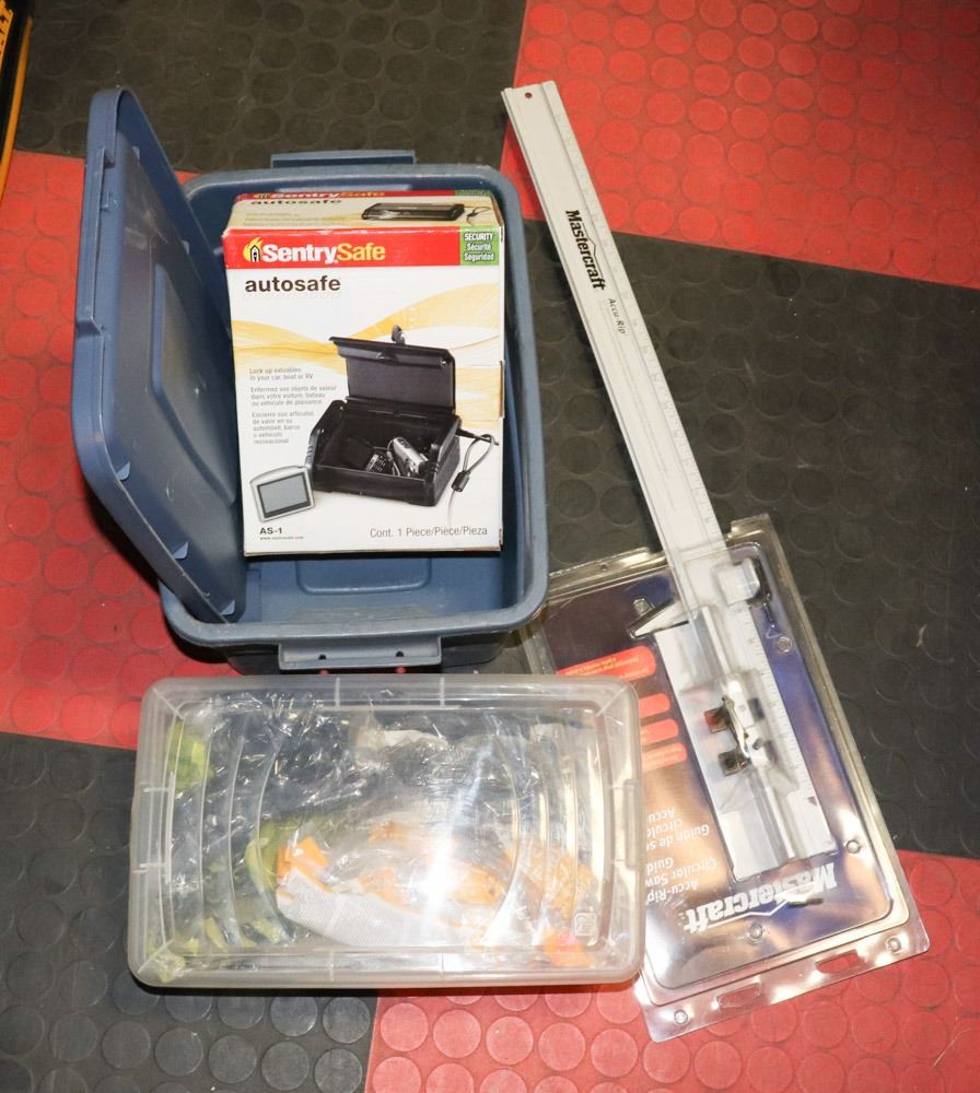 12 PAIR NEW IN BAGS SAFETY GLASSES, SMALL AUTOMOTIVE 'SENTRY SAFE', ACCURIP CIRCULAR SAW GUIDE NEW IN PACKAGE