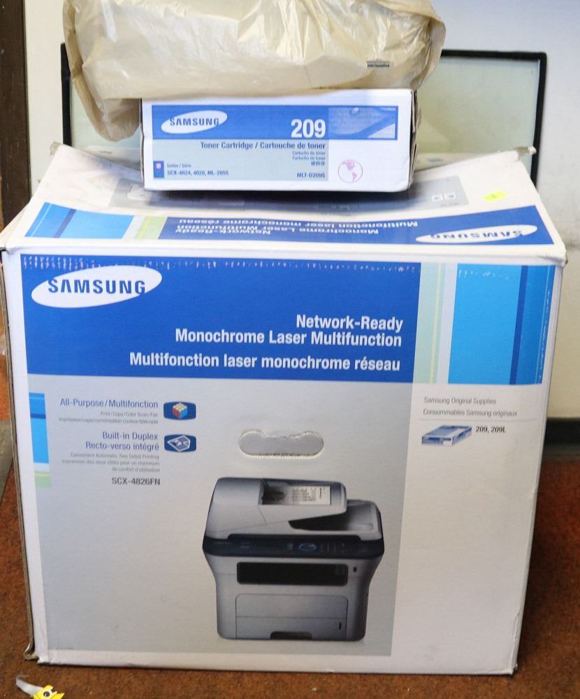 PRINTER, MODEL #SCX-4826FN, COMES WITH 2 RECHARGABLE TONERS **NOTE: THIS ITEM WILL NEED TO BE PICKED UP AT CERTIFIED WELD-ALL METALS @ 9931 - 78 AVENUE, PICK UP DATES ARE ONLY MONDAY & TUESDAY FROM 9AM-6PM AND MUST BE PICKED UP BYTUESDAY. CALL KASTNER'S AT 780-447-0596 TO MAKE ANY SHIPPING ARRANGEMENTS NEEDED BY TUESDAY AT 530PM!**