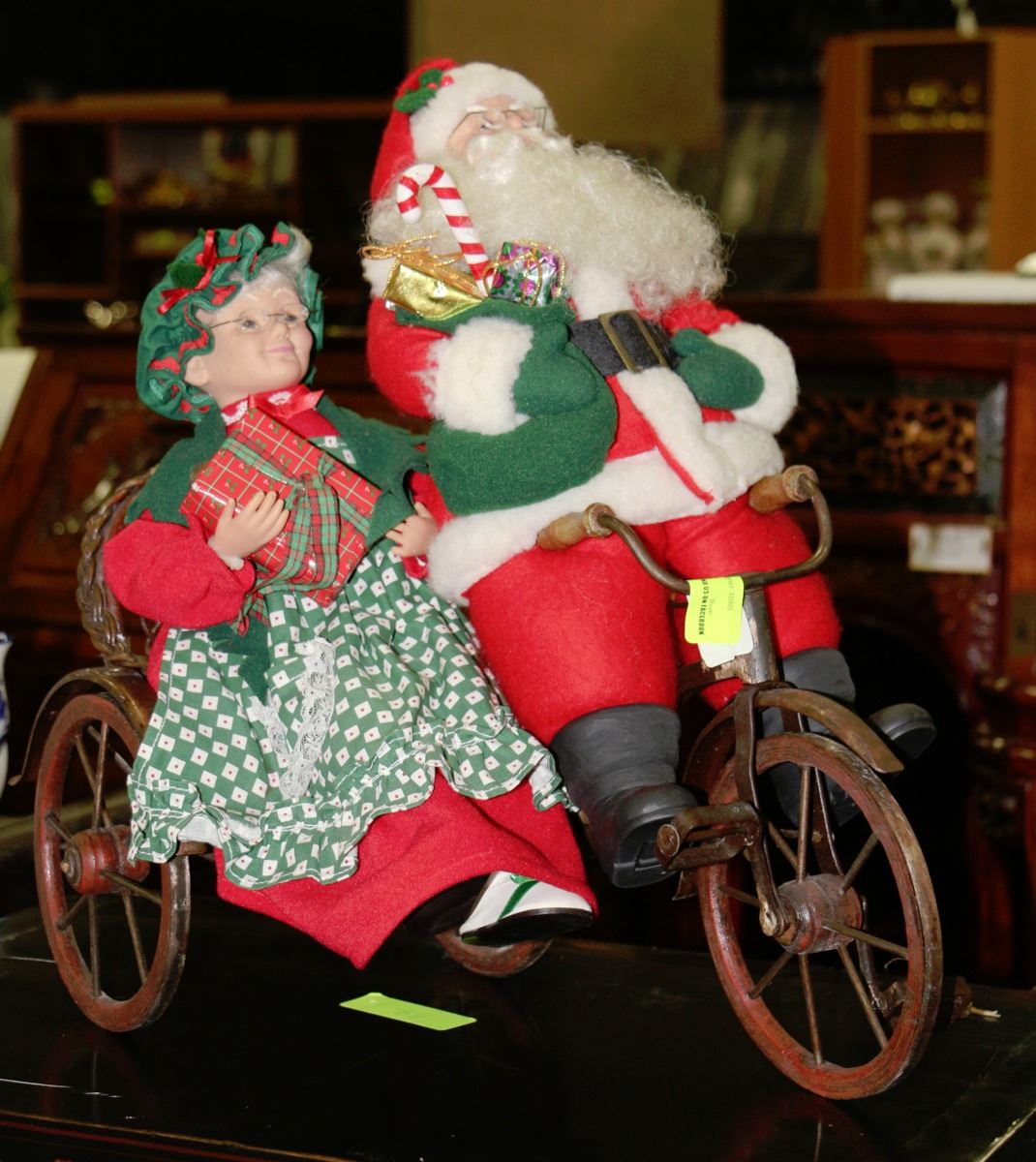 SANTA AND MRS CLAUS ON BICYCLE ORNAMENT
