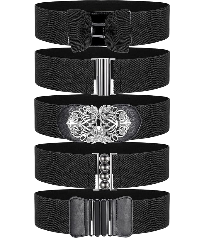 SATINIOR 5 PCS WOMEN VINTAGE WAIST BELT ELASTIC STRETCHY WOMEN DRESS BELTS RETRO WIDE CINCH BELT CORSET WAISTBAND WITH BUCKLE FOR PARTY JEANS PANTS DRESSES, 23.6 TO 27.6 INCHES | Category: Clothing/Shoes