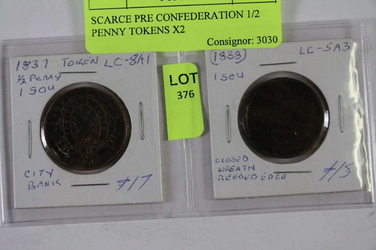 SCARCE PRE CONFEDERATION 1/2 PENNY TOKENS X2