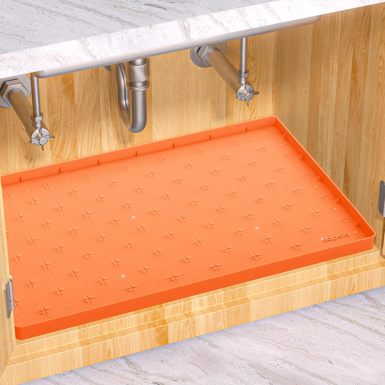 SDPEIA UNDER SINK MAT FOR [19" X 12"] CABINET, UPGRADED SILICONE WATERPROOF MAT KITCHEN CABINET LINER CABINET PROTECTOR KITCHEN ORGANIZERS AND STORAGE