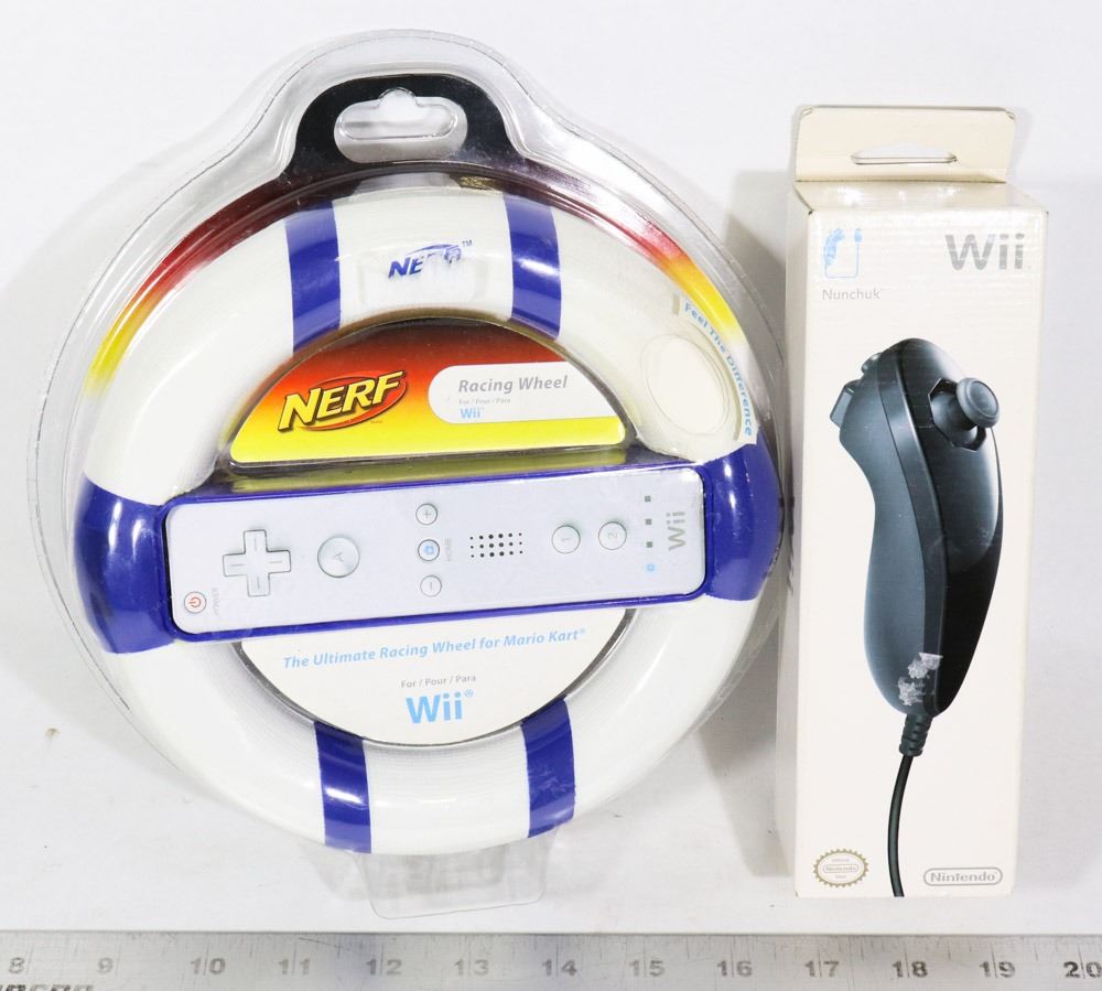 WHEEL FOR NINTENDO VIDEO GAMES & NINTENDO NUNCHUK NAVIGATION CONTROLLER. GAMES